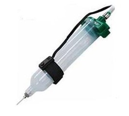 开关安装于针筒上,使用者用手指按ON/OFF键控制出胶量